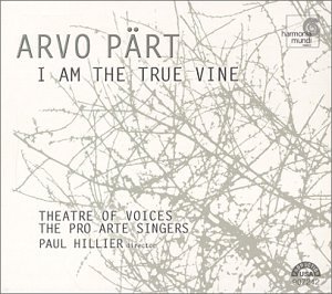 Contemporary troubador Paul Hillier has been one of the key players behind introducing Arvo Pärt's music to Western audiences, first through recordings with the Hilliard Ensemble and later through his magnificently innovative group Theatre of Voices. I Am the True Vine continues the collaboration by bringing together some truly vintage Pärt compositions from the '90s. Although it exists on disc in a more elaborate version for choir and strings, the 1990 Berlin Mass was originally written for just four solo voices and organ. Pärt later revised the score, returning to that original sonority, which is the version offered here. The consummate preparation of the Theatre of Voices, in which every line is lovingly unfurled, the whole building into a memorable aural sculpture, only heightens a listener's admiration for Pärt's ability to make the seemingly simple profound. We also hear the composer in a more overtly joyful mood than usual in the short first selection, while the title track--a setting of a text from the Gospel of John and one of three world premiere recordings here--is a marvelously organic example of word painting (representing Pärt's choral virtuosity even when it comes to setting English text). --Thomas May